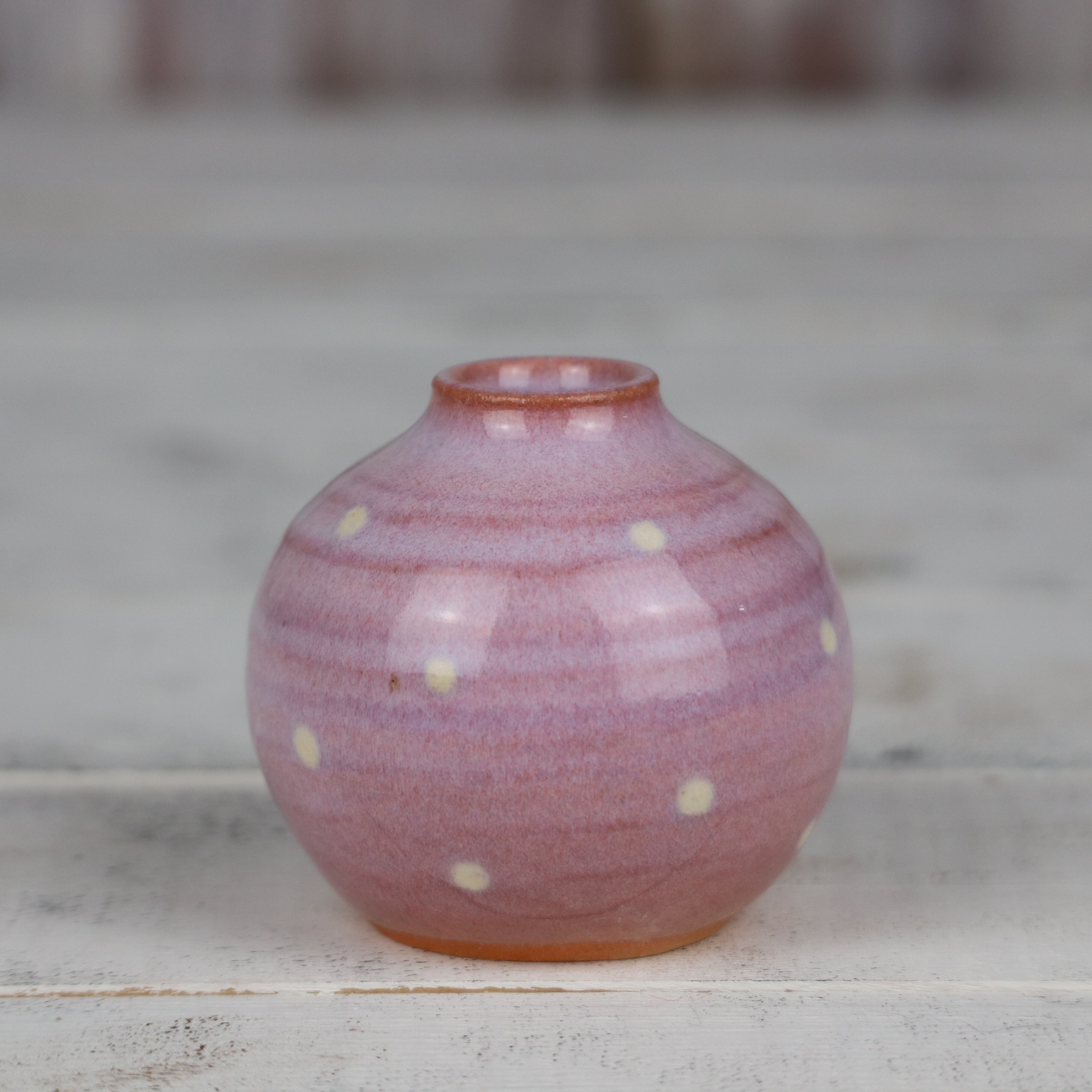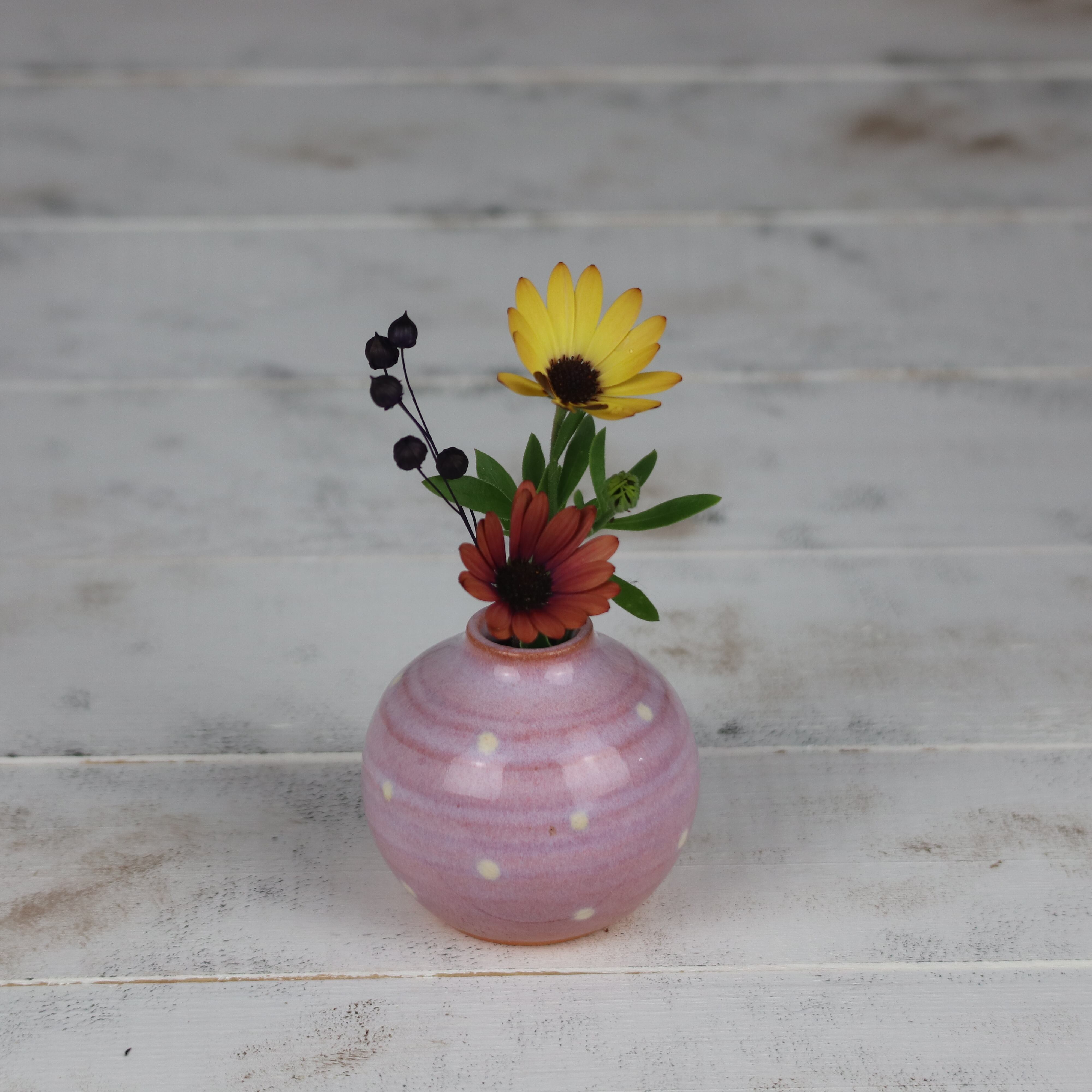 萩の土に白の釉薬を薄く掛け、ピンク色をだした小さな花入れです。一輪挿し等にご利用ください。