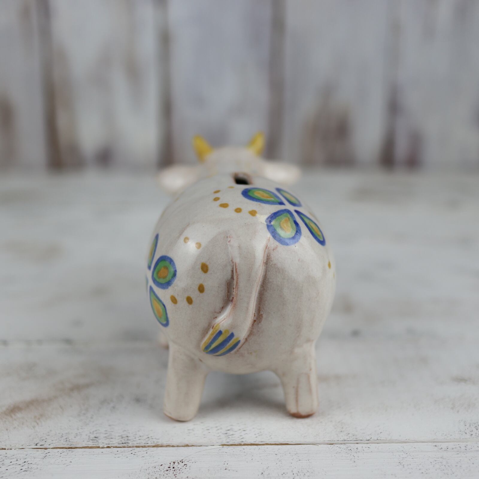 牛の貯金箱です。お腹に穴が空いているので、お金が出せます。