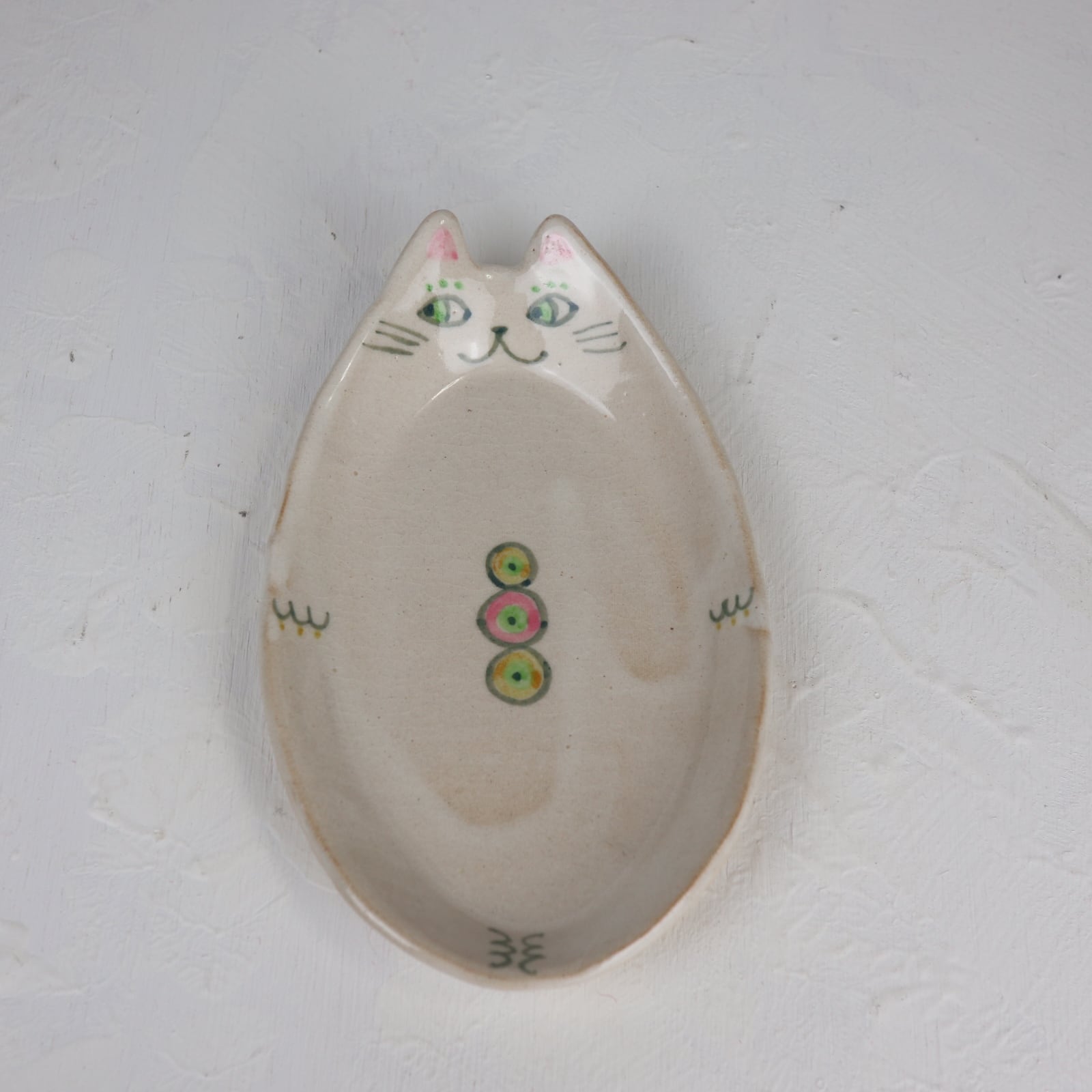 猫の絵付けをしたケーキ皿です。ケーキを抱えているようで可愛らしいです。