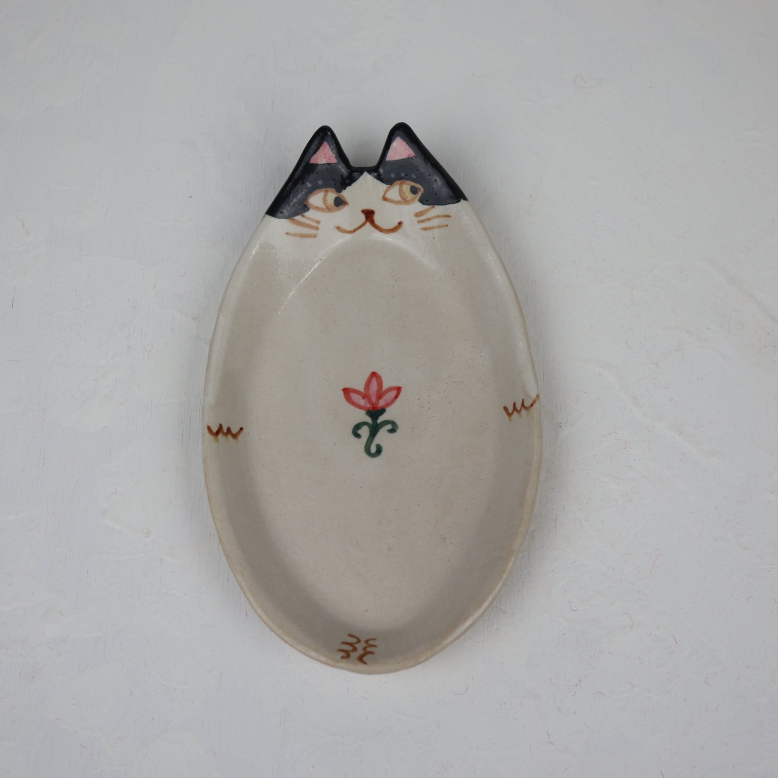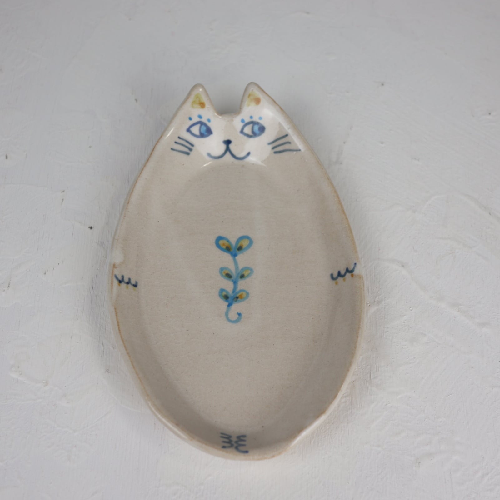 猫の絵付けをしたケーキ皿です。ケーキを抱えているようで可愛らしいです。