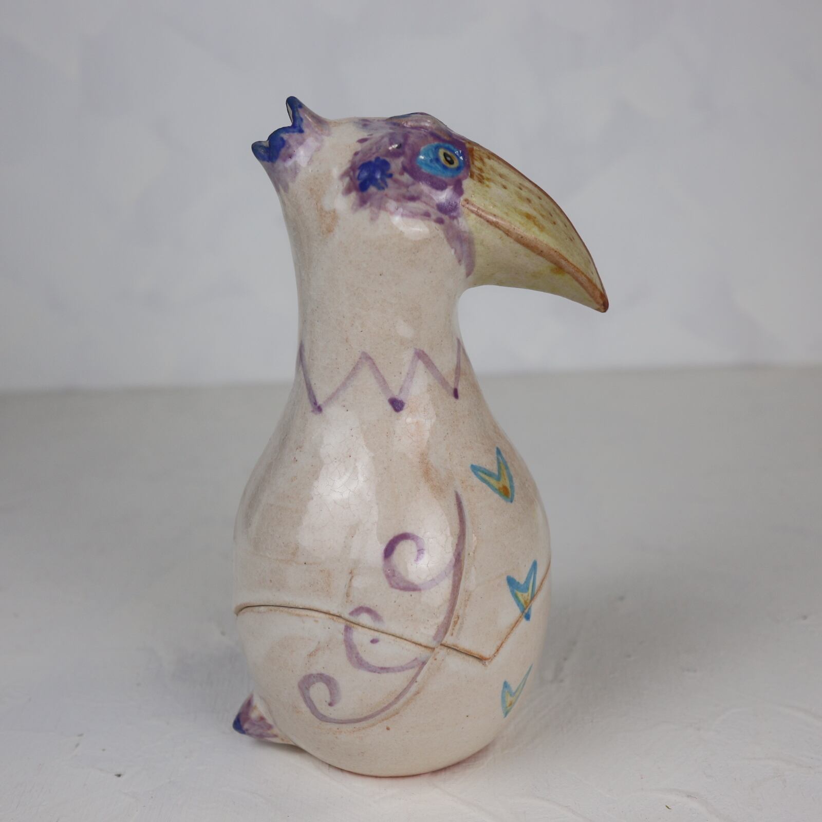 ハシビロコウさんの香炉です。お腹で上下に別れています。頭の天辺からけむりがでます。癒されます。シュールなお顔がたまりません。