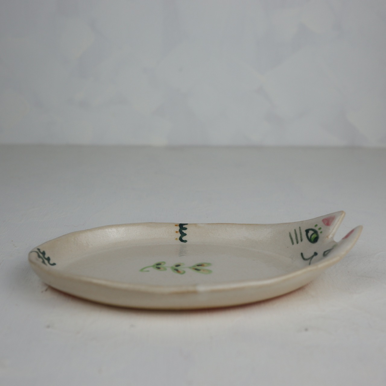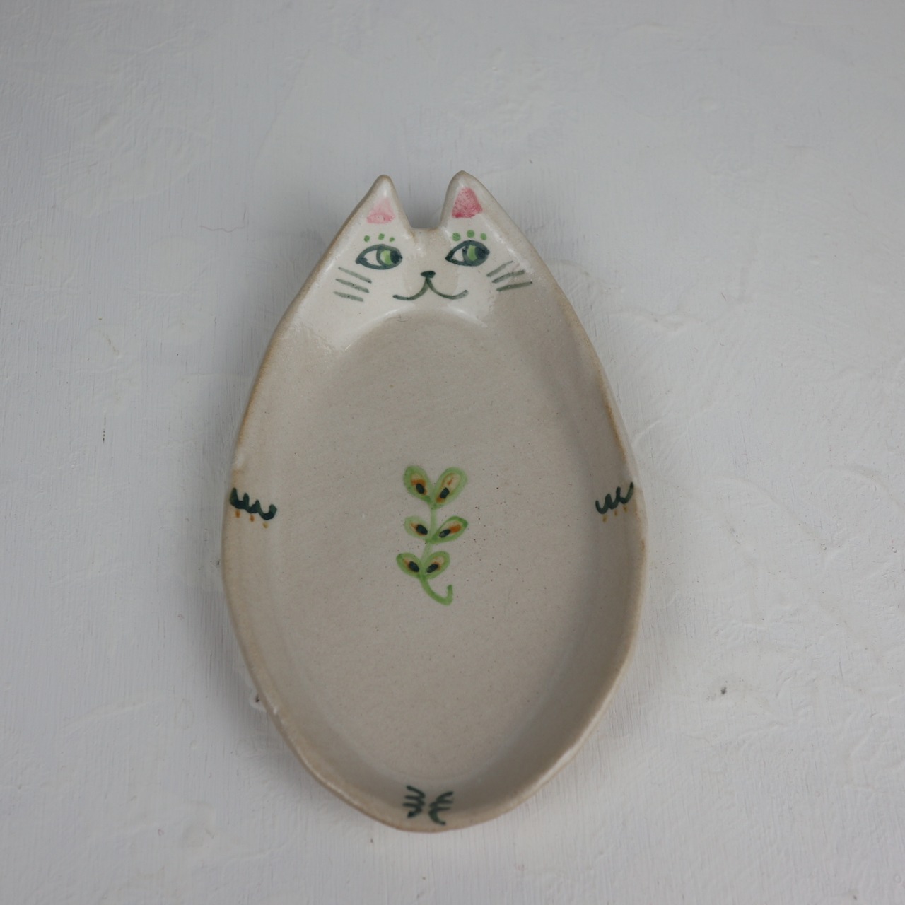 猫の絵付けをしたケーキ皿です。ケーキを抱えているようで可愛らしいです。