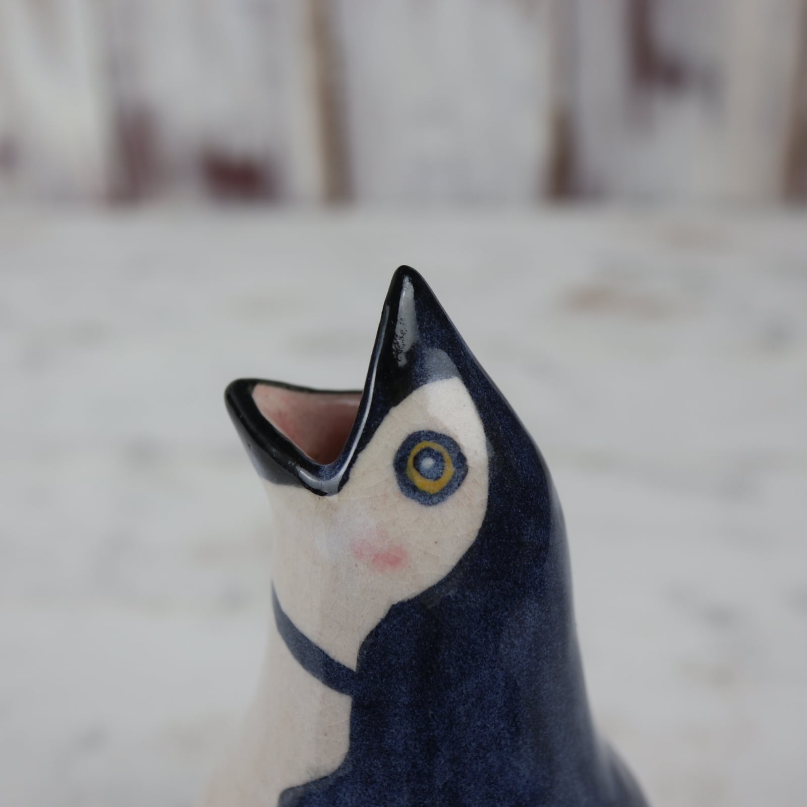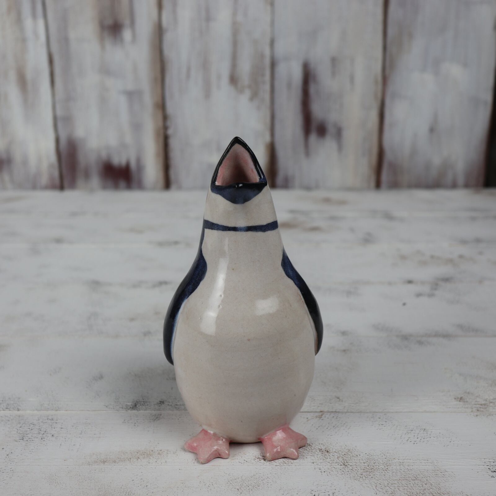 ヒゲペンギンの一輪挿しです。オエッとなるシュールな様子がたまりません。