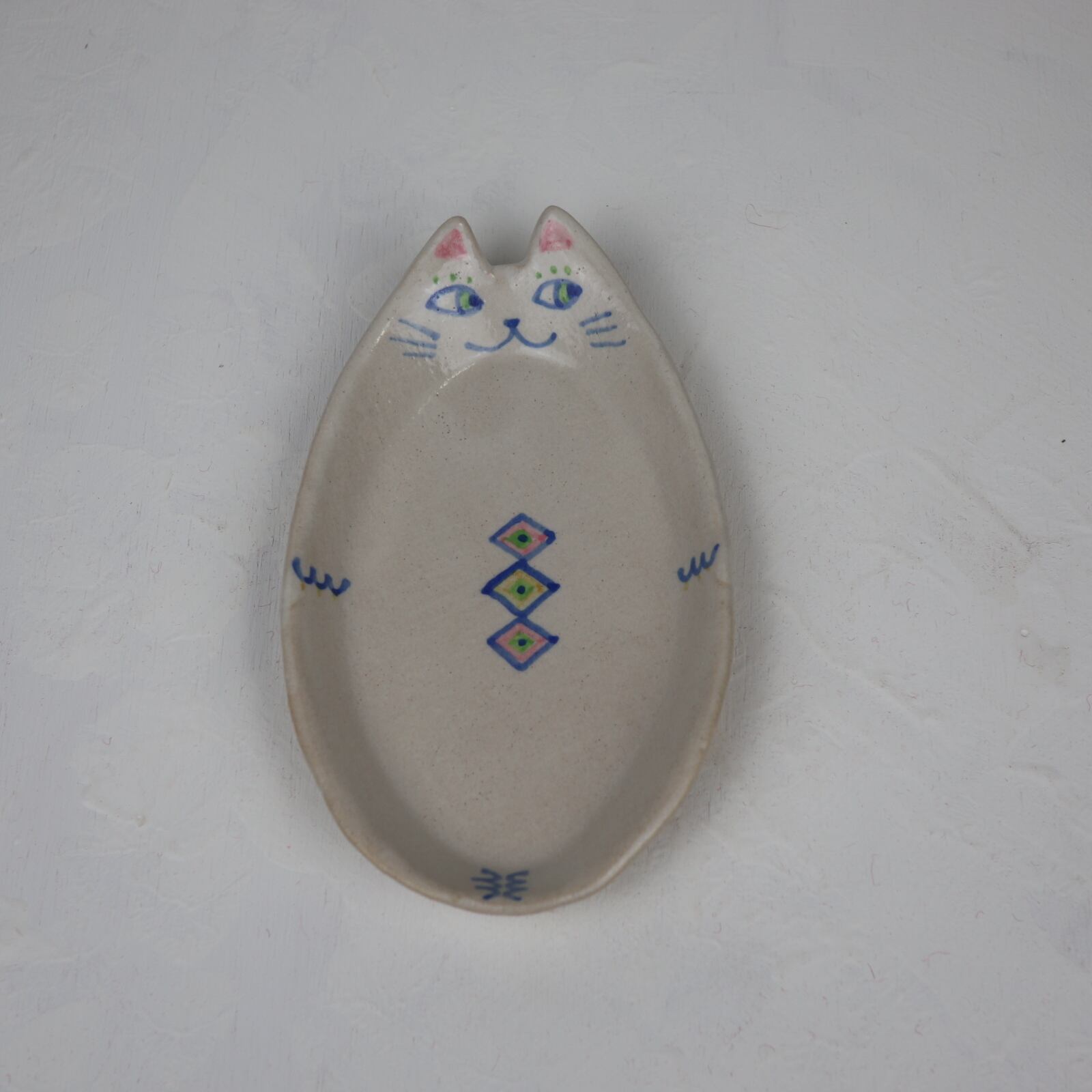 猫の絵付けをしたケーキ皿です。ケーキを抱えているようで可愛らしいです。