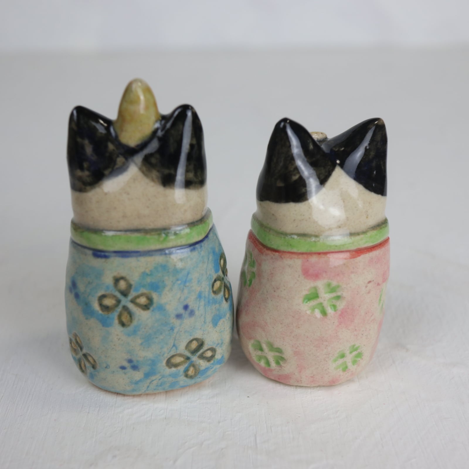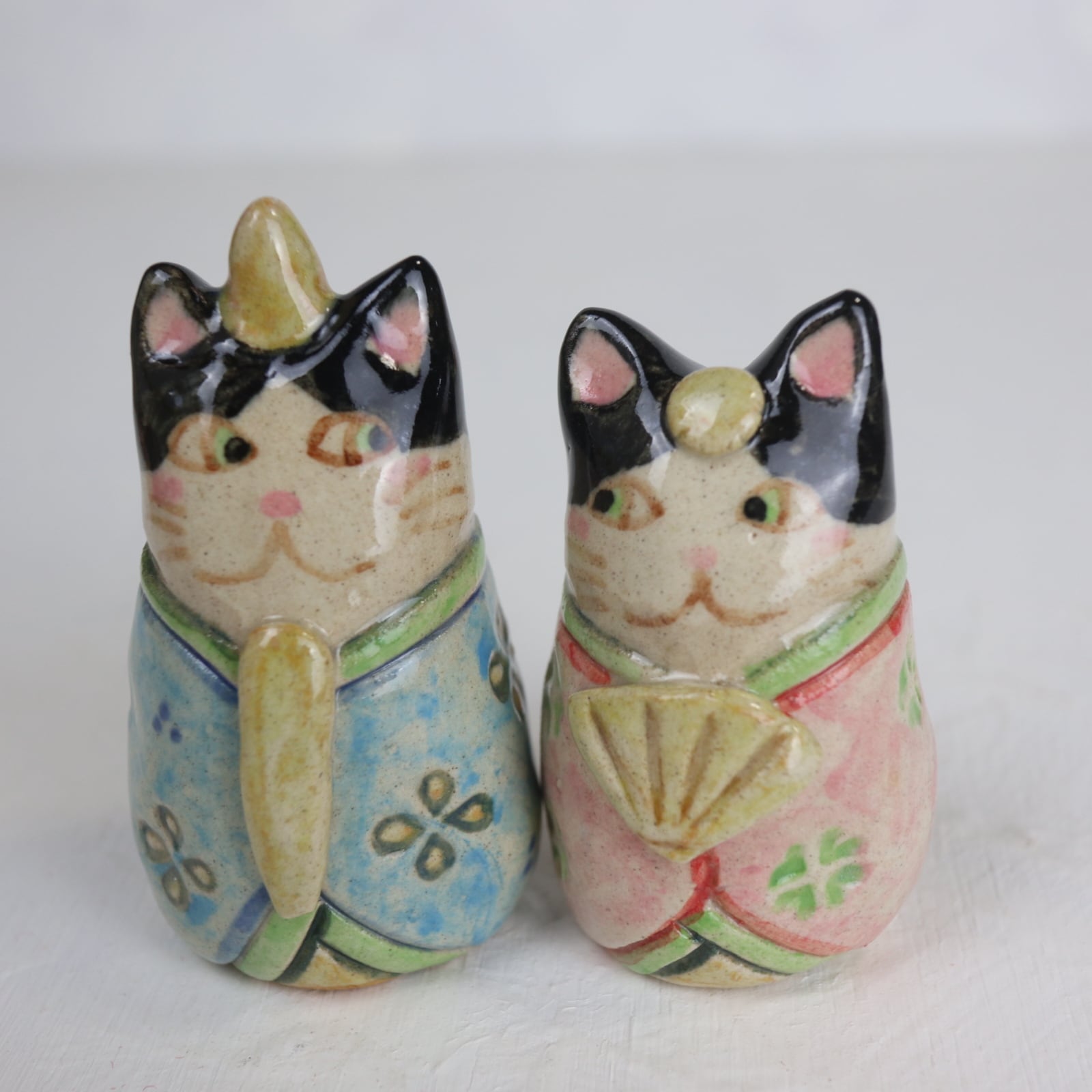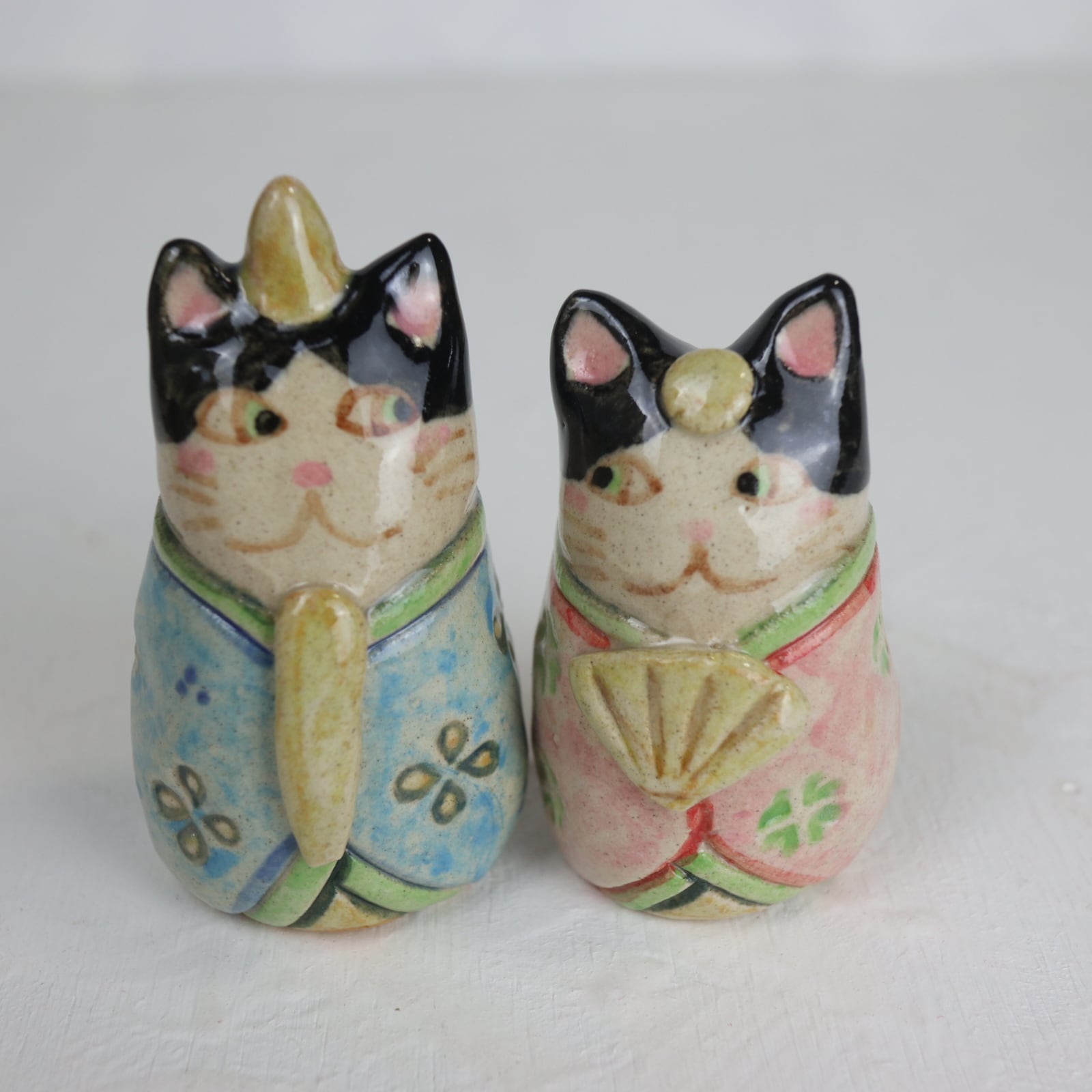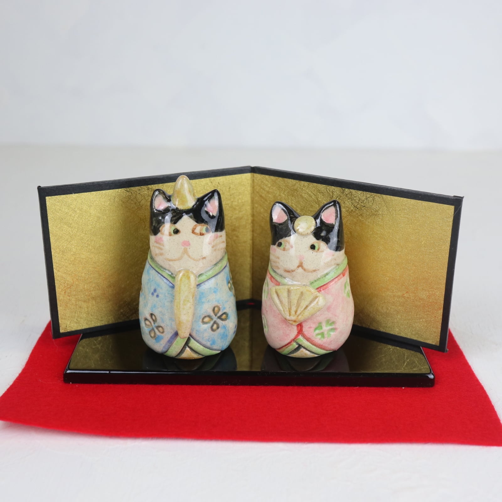 猫のお雛様のセットです。敷板と屛風、毛氈が付いています。