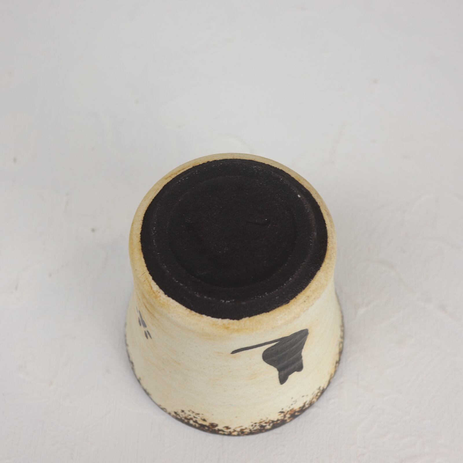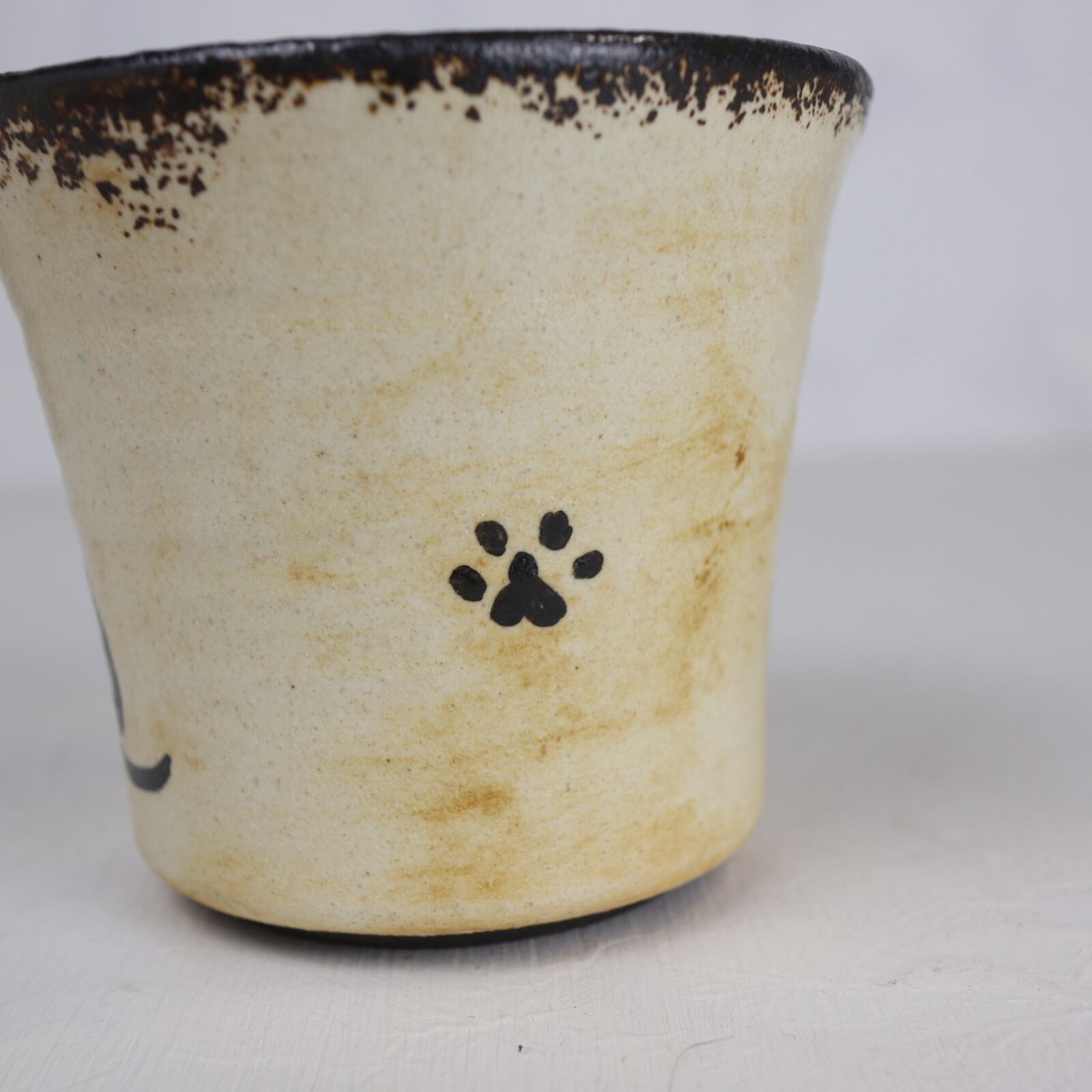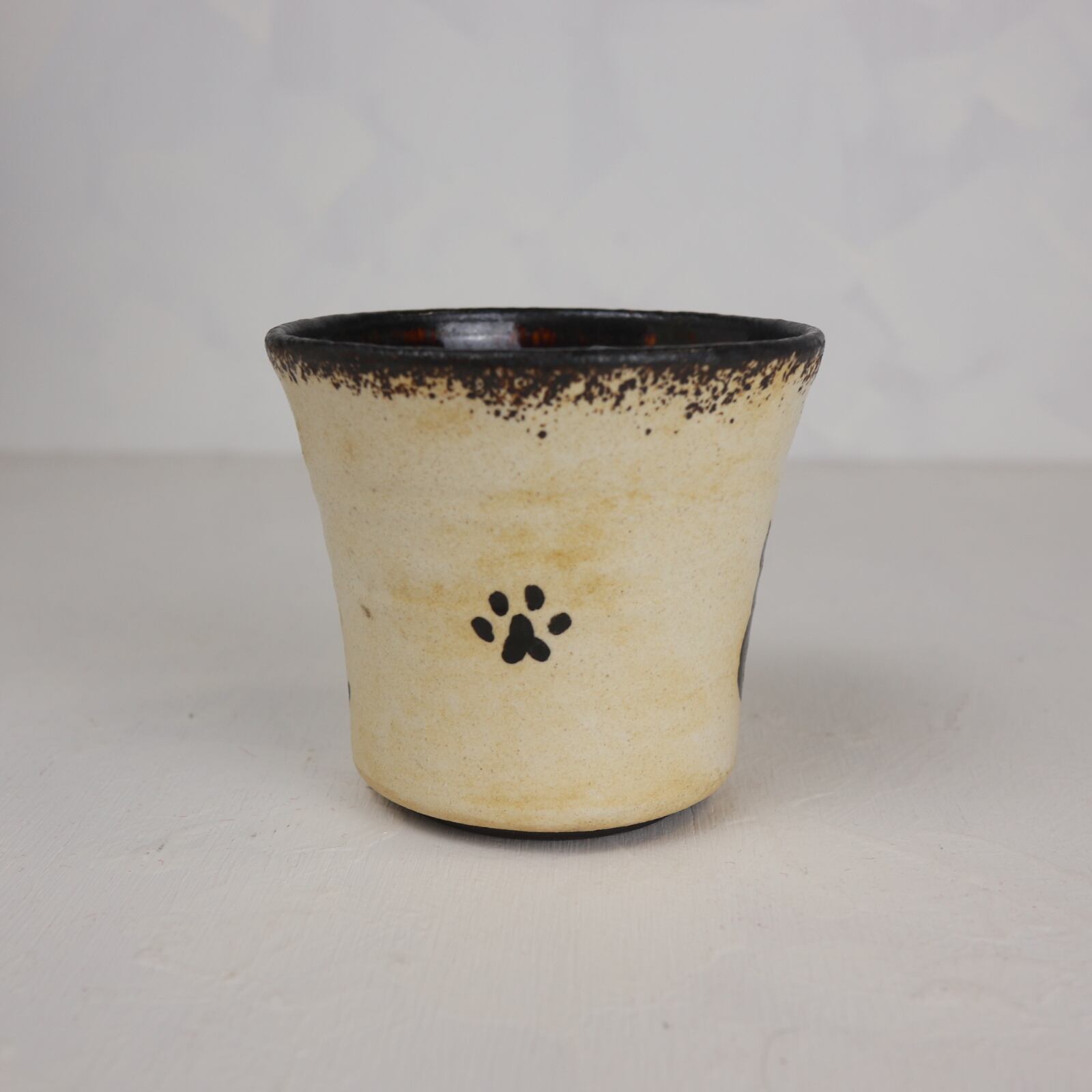 外側が焦げた風合いの角型フリーカップに猫のシルエットと肉球を
