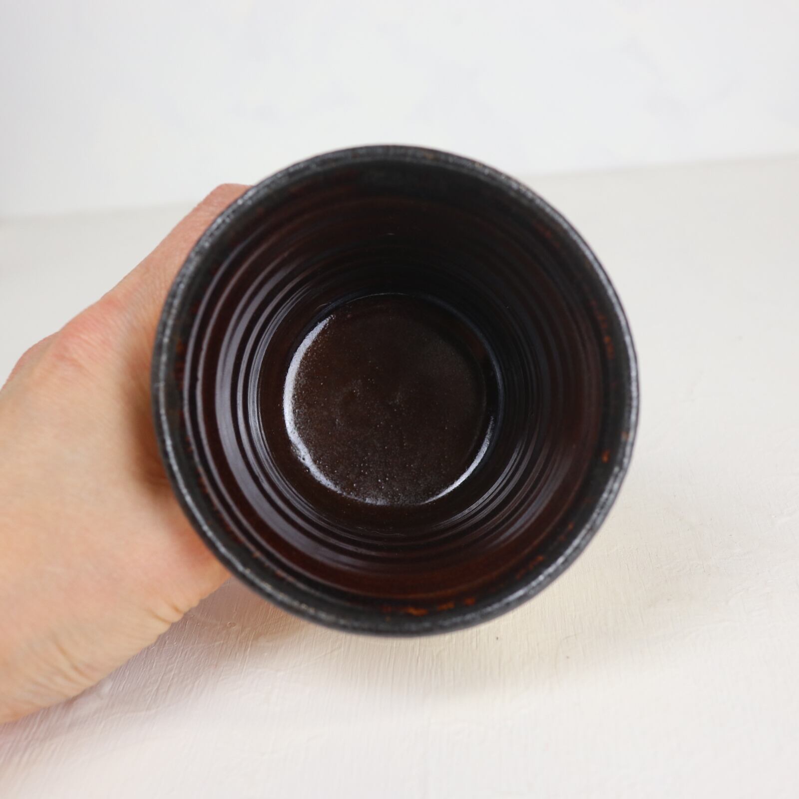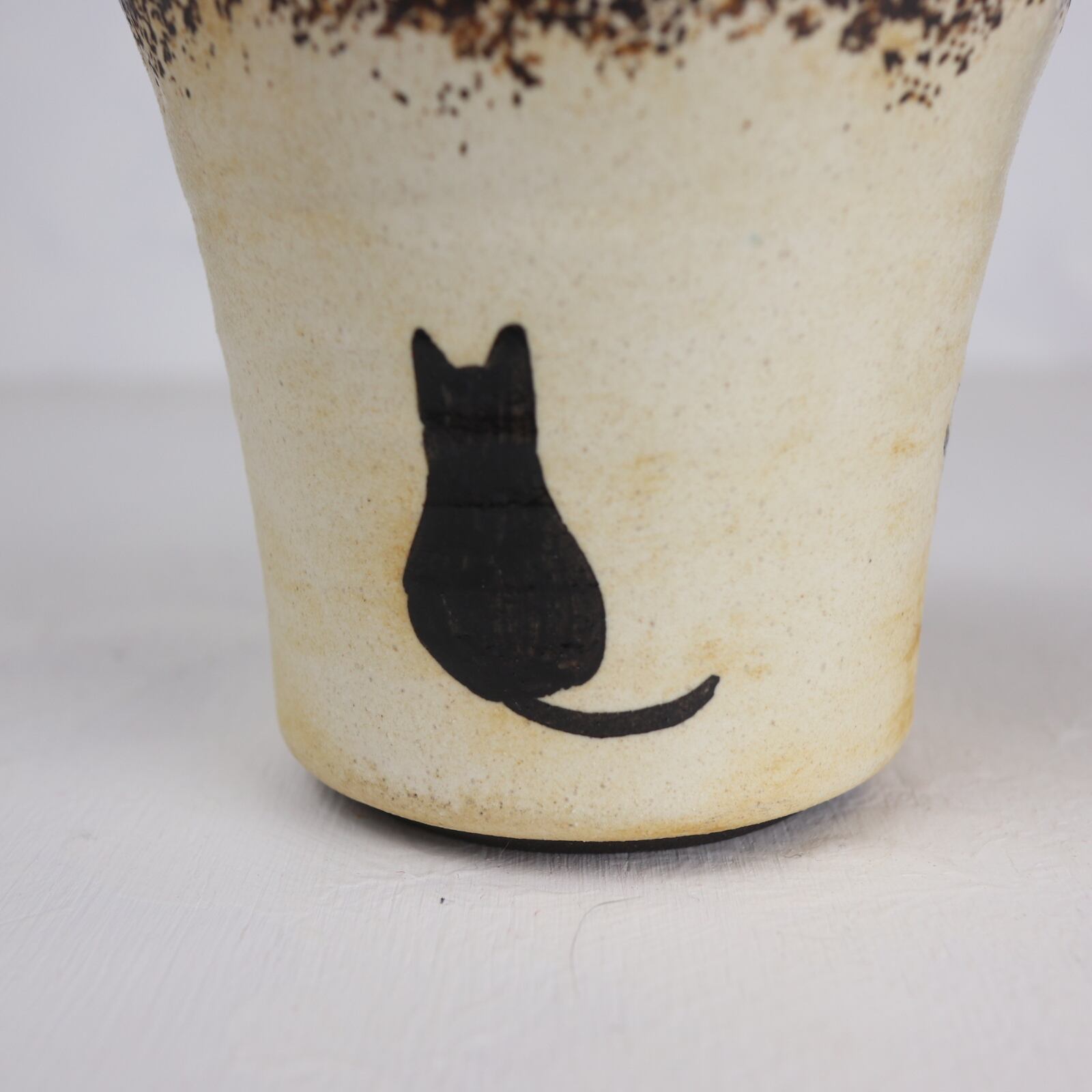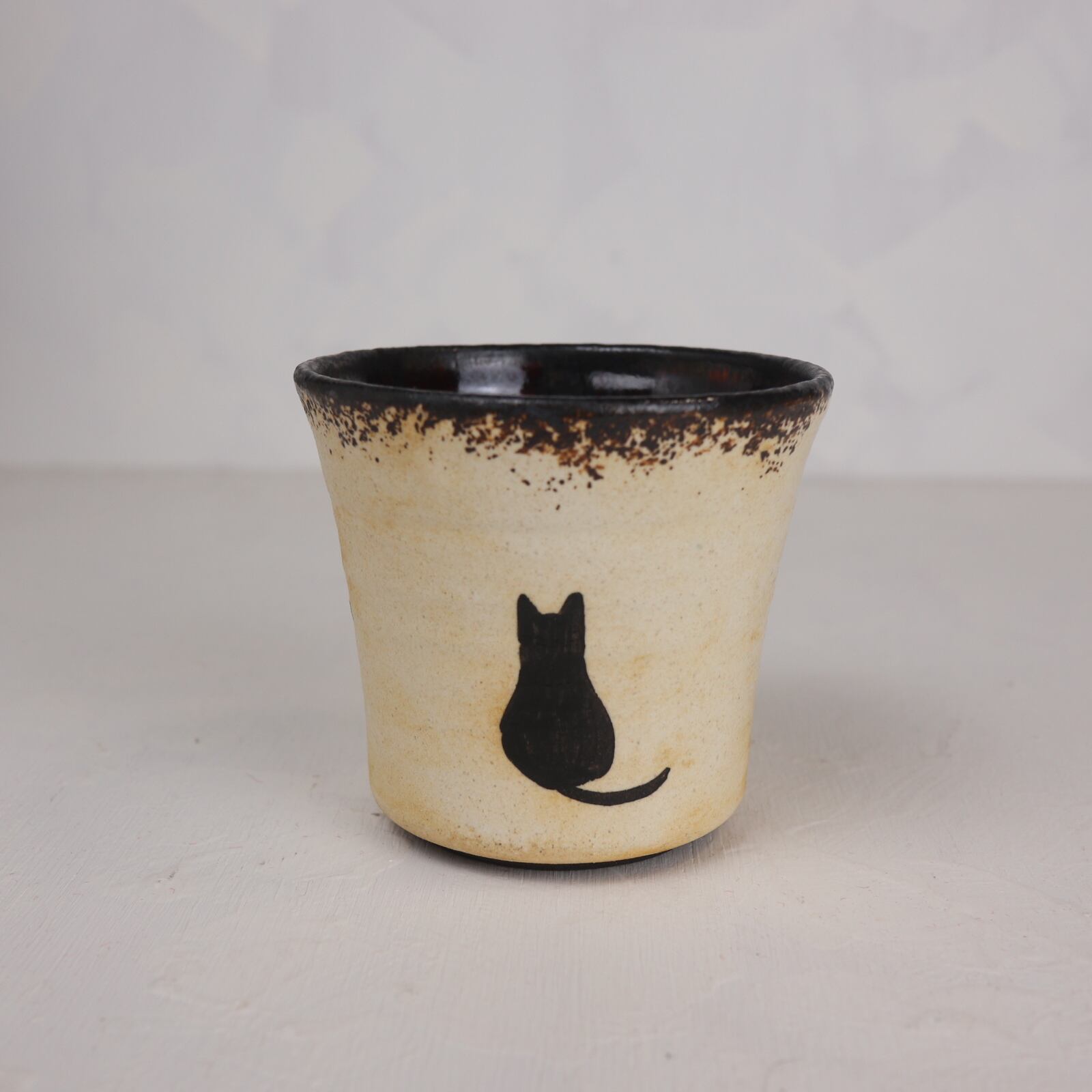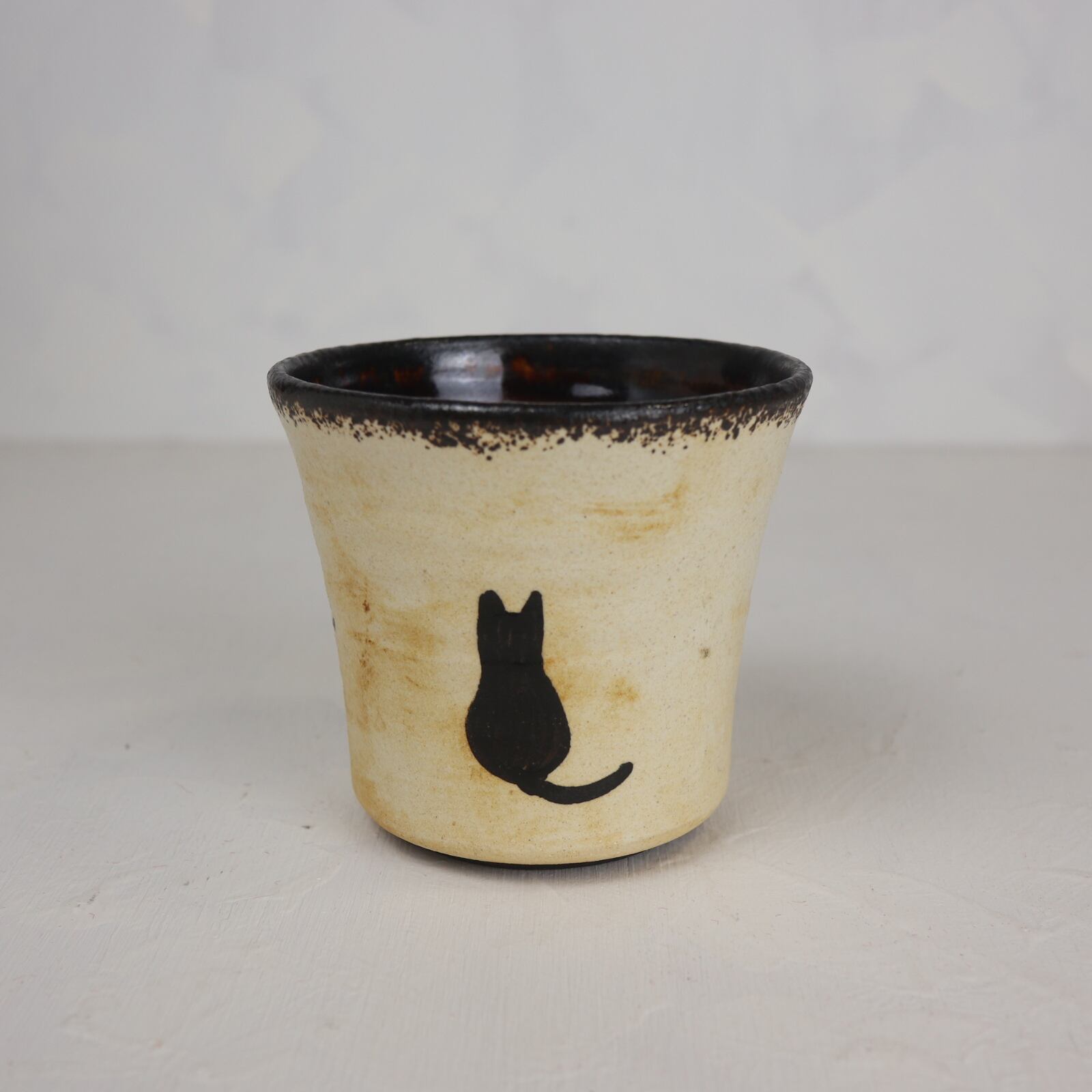 外側が焦げた風合いの角型フリーカップに猫のシルエットと肉球を